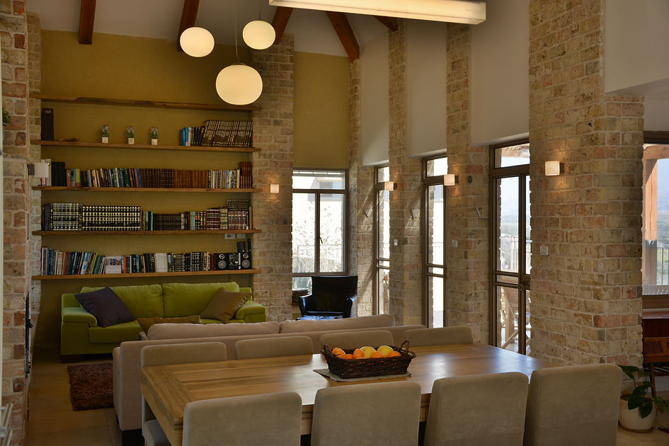הבית נבנה על מגרש מדורג הצופה לוואדי ירוק עם חורבות עתיקות. הבית תוכנן כך שהנוף ייכנס אל תוך הבית.